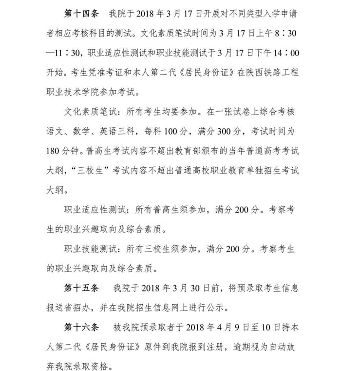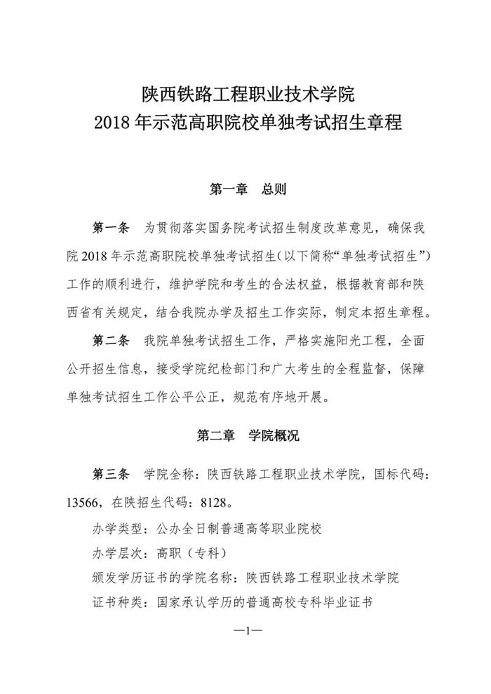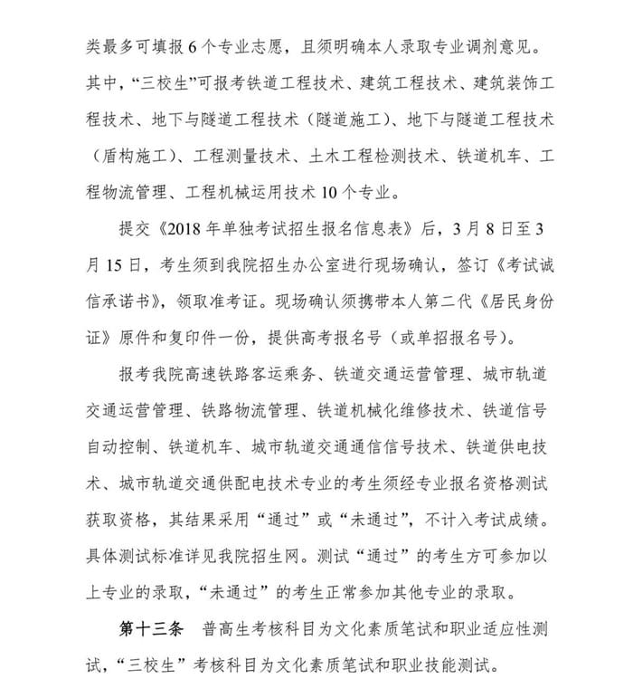 陕西铁路工程职业技术学院2018年单招简章